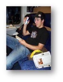 As I attempted to board the guy checking tickets on the platform said I would have to pay an additional 30 Euros to get a sleeper which he said I had to do; after already paying 45 Euros for my train ticket to begin with. I told him I did not have it and that I did not want a sleeper so I sat in the entrance way to the train next to the bathrooms. I was not going to pay even more to ride this train and I stood by my decision. I then had to switch at the second stop and climbed on a train that was being connected to another car. I got to see the worker give instructions to the conductor in Polish and as I was watching an Austrian guy peered in from the other car waving and smiling while taking pictures of me. He asked me over to his car and I questioned if they were heading in the same direction as I was. They said sure why not and so I came over there and met a team of Austrian Ultimate paintball who were on their way to Warsaw for a tournament. Funny, entertaining, beer drinking, banana throwing; getting yelled at by the ticket girl about smoking in the bathrooms and Mama Mia theme song playing on the iPod. Patrick, Christian, Stefan and Min-u Seo were a few of the guys from Austria that were so kind to keep me company.