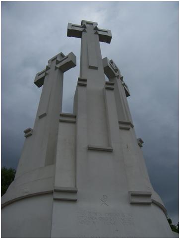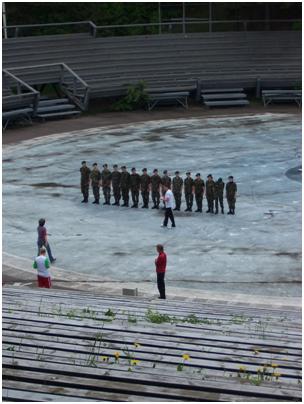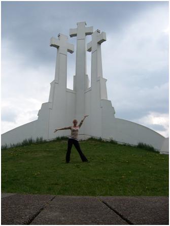 I then set off in quest for the Three Crosses Hill to see the views and take pictures of these beautiful crosses. It was a hike up to the top but I finally made it. The sky appeared fascinating with the sun out, deep grayish blue sky and you could feel the moisture in the air as if nature was holding back its tears of joy as I beheld something so beautiful. To add to this moment I was the only one on top of this peak; giving the ambiance of pure serenity. With these views of the city I could see the castle where I was only a few hours prior and the balance between nature and humanity is in perfect unison within this captivating European capital. I then continued to hike through the mountainside, down unknown paths eventually coming to an old track stadium where young cadets in uniform practiced marching and took commands. “Left, right, about face…forward march,” yet all in the native Lithuanian tongue which I could follow since each statement commanded the cadets in a specific direction. Reminded me of my days in high school when I participated in JROTC and learned to be part of a team, take orders and give commands as I received the training to potentially become a soldier in the United States Military. I relaxed on the benches in the open air arena and just watched as I took in my surroundings and enjoyed the fresh air.