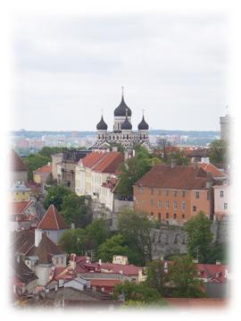 I then walked through the old town gate to the large church with the noticeable green steeple to get a better glimpse of Tallinn. The climb to the top was all by winding stairs and was a nothing less then a workout; but the view was well worth it. Many churches spread across the horizon; colorful buildings throughout the old town and a Russian Orthodox Church in the near distance stand out among everything with its unique style. To be able to see the old town and the walls that make up a very interesting historical district yet a backdrop of modern hotels and skyscrapers depict the current development of Tallinn most likely since their independence from the USSR. At the top I met a guy from Colorado, James Buttrill, who was also visiting Tallinn for the first time. We talked and visited a few more sites together including the Russian Church and two other magnificent places of worship along with a walk along