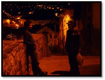 The sun drops deeper beyond the mountains as we become more secluded from the world around us, people have already left the ruins for the city below as we attempt to head in the direction of the center of town, amazing views of dimly lit roads and church spires, shadows of people walking along, an old building walls while Carmen and Darren chat up ahead so many images capture