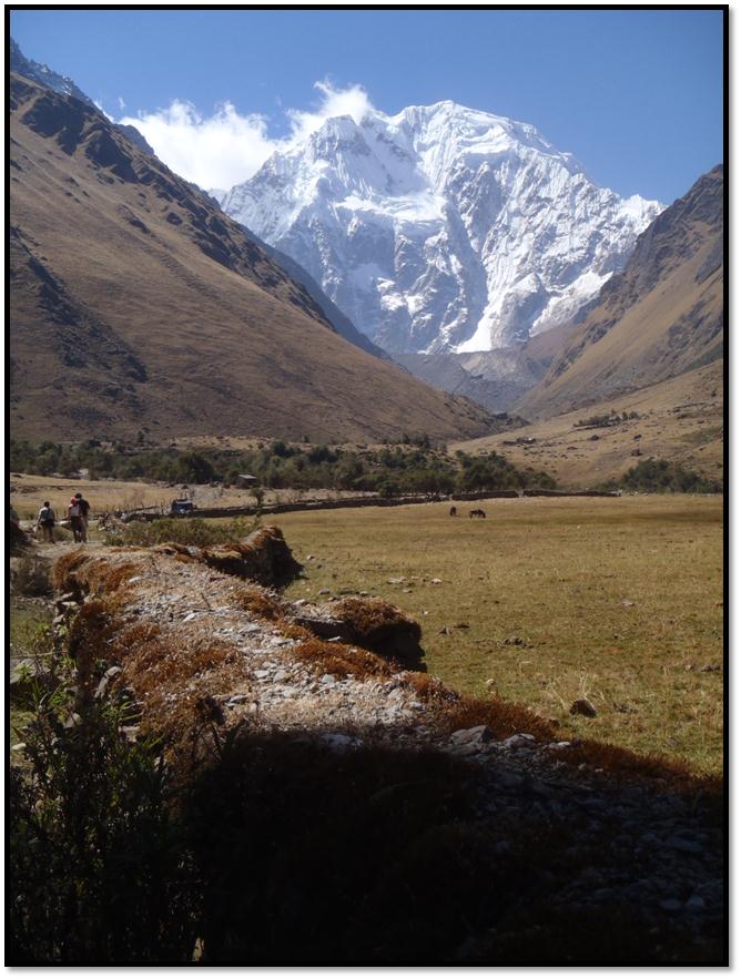 Soon enough, as we walk up and wind around the mountains edge, the first glimpse of Mt. Salkantay shows itself to us during our first hours of hiking through Peru. Breathtaking and at 20,600ft (6,279m) it is a sight to see.