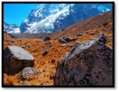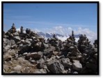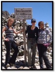 gle to the top of Salkantay Pass. We managed walking 5.5 miles uphill to the top where we stacked our victory stones and admired the beautiful mountain peaks; above the clouds, where the rocks meet the edge of where snow begins to cap the mountain peaks.