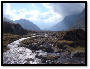 Out in the distance a mist filled the valley while mountain tops protrude into the clouds. We looked out across the valley below and spotted Deniz and Cindy waiting for us to arrive at the bottom. I yelled his name and my voice echoed over and over again, while Deniz returned a whistling reply. They were very far away, and yet he still heard us from the top of the mountain pass.