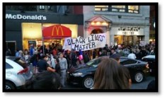 Groups diverted in different directions, making it difficult for the police to follow all of the different groups. We decided to join a smaller group, taking to the streets down Broadway toward t